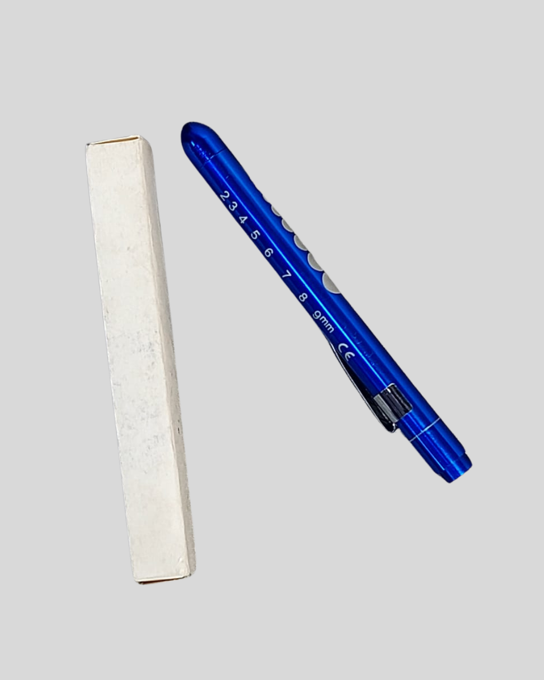 Compact and lightweight pen torch designed for medical use. Ideal for pupil examination and general diagnostic purposes. Features a bright LED light and comes with a replaceable battery for reliable, long-lasting performance. Fits easily in your pocket or on a scrub top.