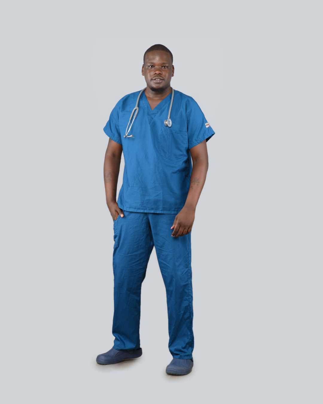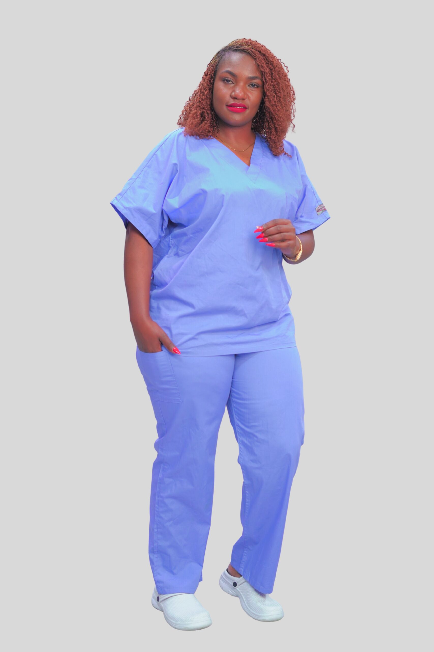 Stay comfortable and professional all day. Trusted choice for durable, budget-friendly medical uniforms. Made from a breathable, easy-care poly-cotton blend, these scrubs are built to withstand long shifts and repeated washing. The set includes a classic V-neck top with functional pockets and matching trousers with an elastic waist for all-day comfort and mobility.