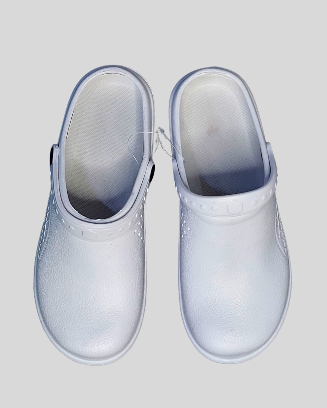 Comfortable, lightweight, and easy to clean, these white medical clogs are perfect for long shifts in clinical and hospital environments. Designed in the classic “Crocks” style, they feature a slip-resistant sole, cushioned footbed, and ventilation holes for breathability. The enclosed toe design provides protection, while the adjustable back strap ensures a secure fit.